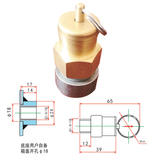 本釋放閥主要用于使容器內(nèi)的氣體壓力不超過預(yù)定值,當壓力高于釋放壓力(P)時,閥將自動打開,使氣體外泄,當壓力低于釋放壓力(P)時,閥自動關(guān)閉。另外,用戶還可隨時拉動拉環(huán),打開壓力釋放閥門釋放內(nèi)部壓力。