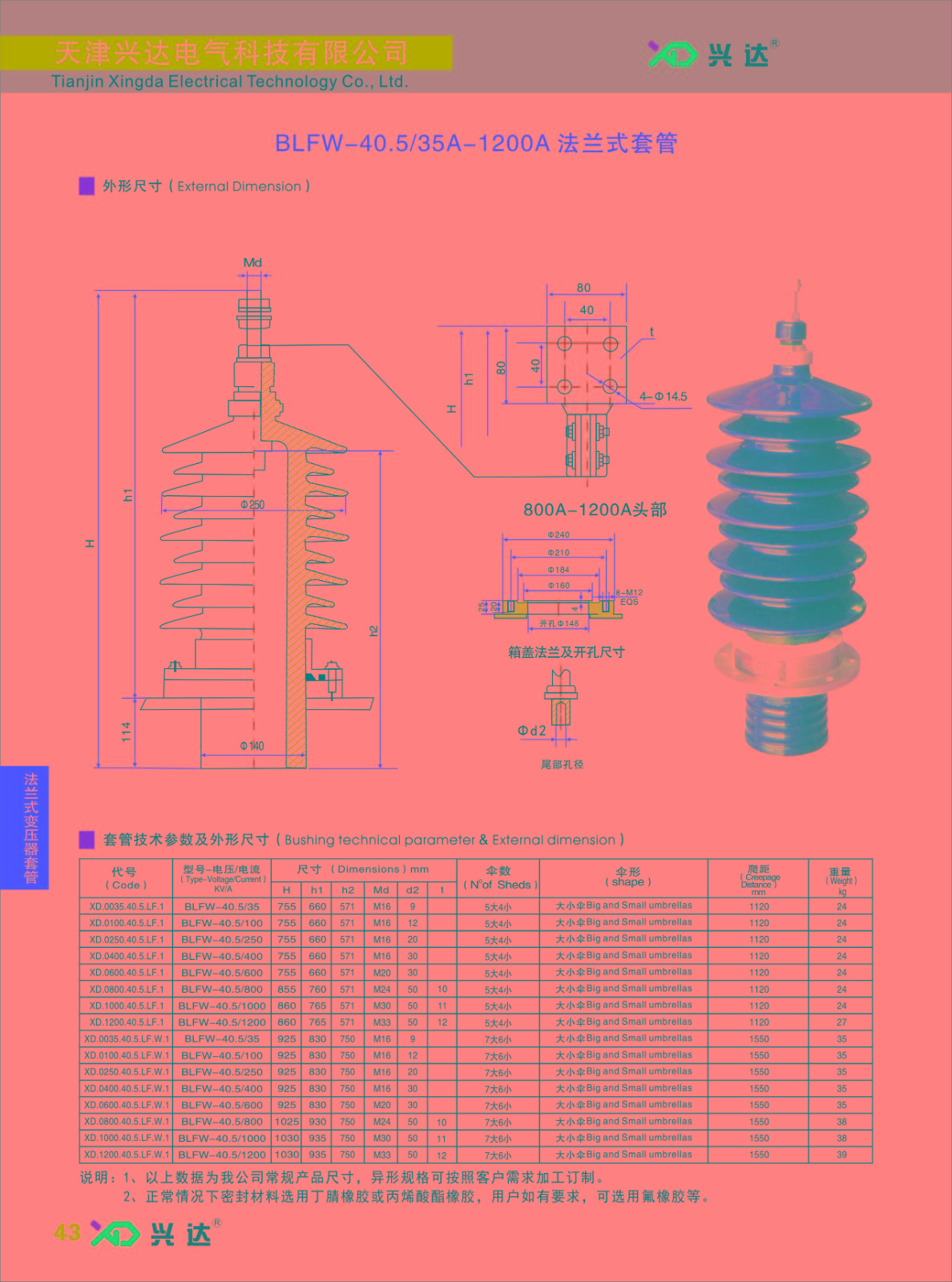 2. 具有高抗震和耐破性、機(jī)械強(qiáng)度好,套管鋁合金法蘭采用航空技術(shù)生產(chǎn),瓷套與法蘭采用特殊工藝經(jīng)卡裝后粘結(jié)在一起,機(jī)械強(qiáng)度高、耐腐蝕、外型美觀,適合特殊環(huán)境。