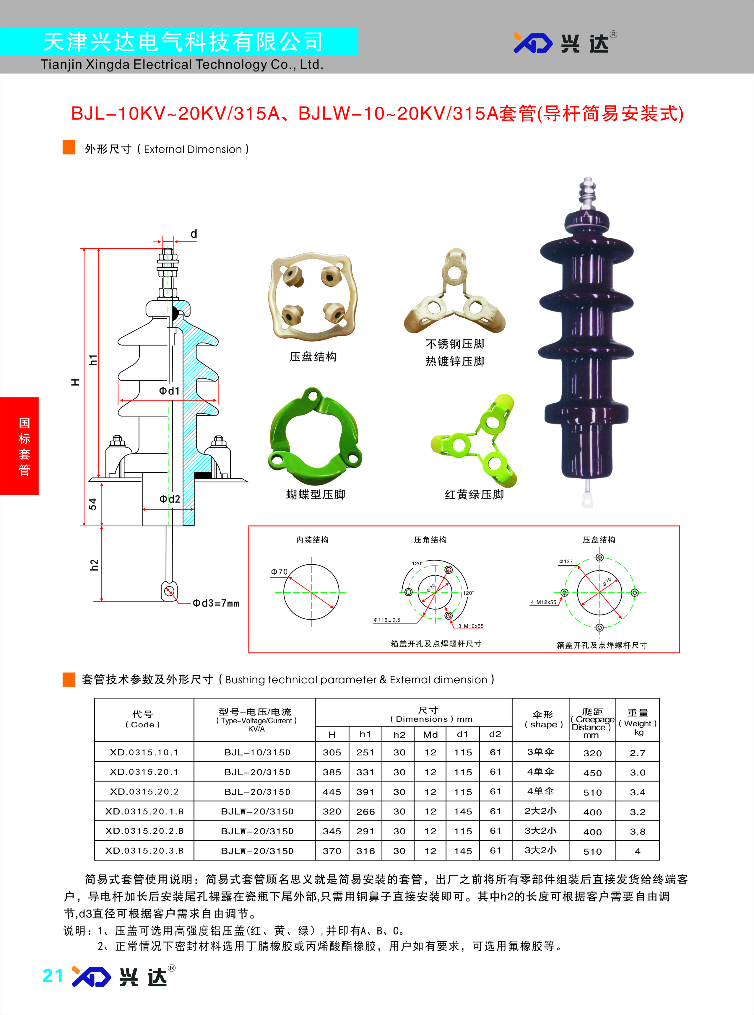 BJL-10 ~20KV/315A BJLW-10 ~20KV/315A套管(導(dǎo)桿簡易安裝式)