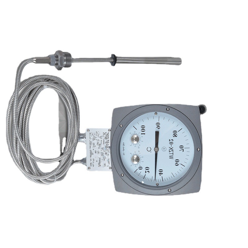 油浸式變壓器溫度控制器是用于測(cè)量電力變壓器內(nèi)變壓器油溫的測(cè)量?jī)x表,儀表采用復(fù)合傳感器技術(shù),即儀表溫包推動(dòng)彈性元件的同時(shí),能同步輸出Pt100熱電阻信號(hào),此信號(hào)可遠(yuǎn)傳到數(shù)百米以外的控制室,通過(guò)XMT系列數(shù)顯溫控儀同步顯示并控制變壓器油溫。也可通過(guò)XMT系列數(shù)顯儀表,將Pt100熱電阻信號(hào)轉(zhuǎn)換成與計(jì)算機(jī)聯(lián)網(wǎng)的直流標(biāo)準(zhǔn)信號(hào)(0~5V、1~5V、4~20mA)輸出。儀表采用外置接線(xiàn)盒方便用戶(hù)接線(xiàn)。