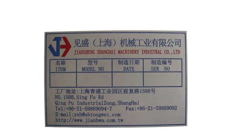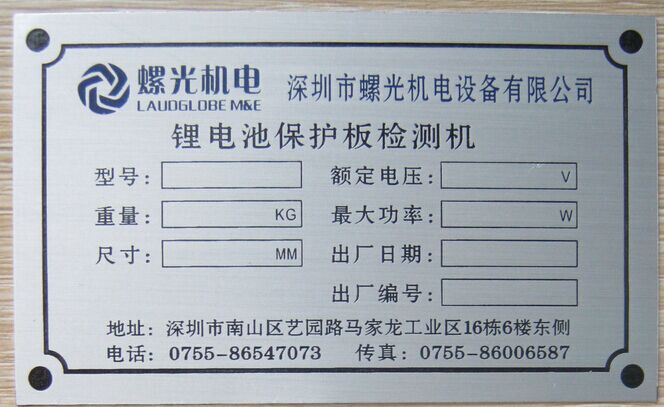 機(jī)械設(shè)備銘牌