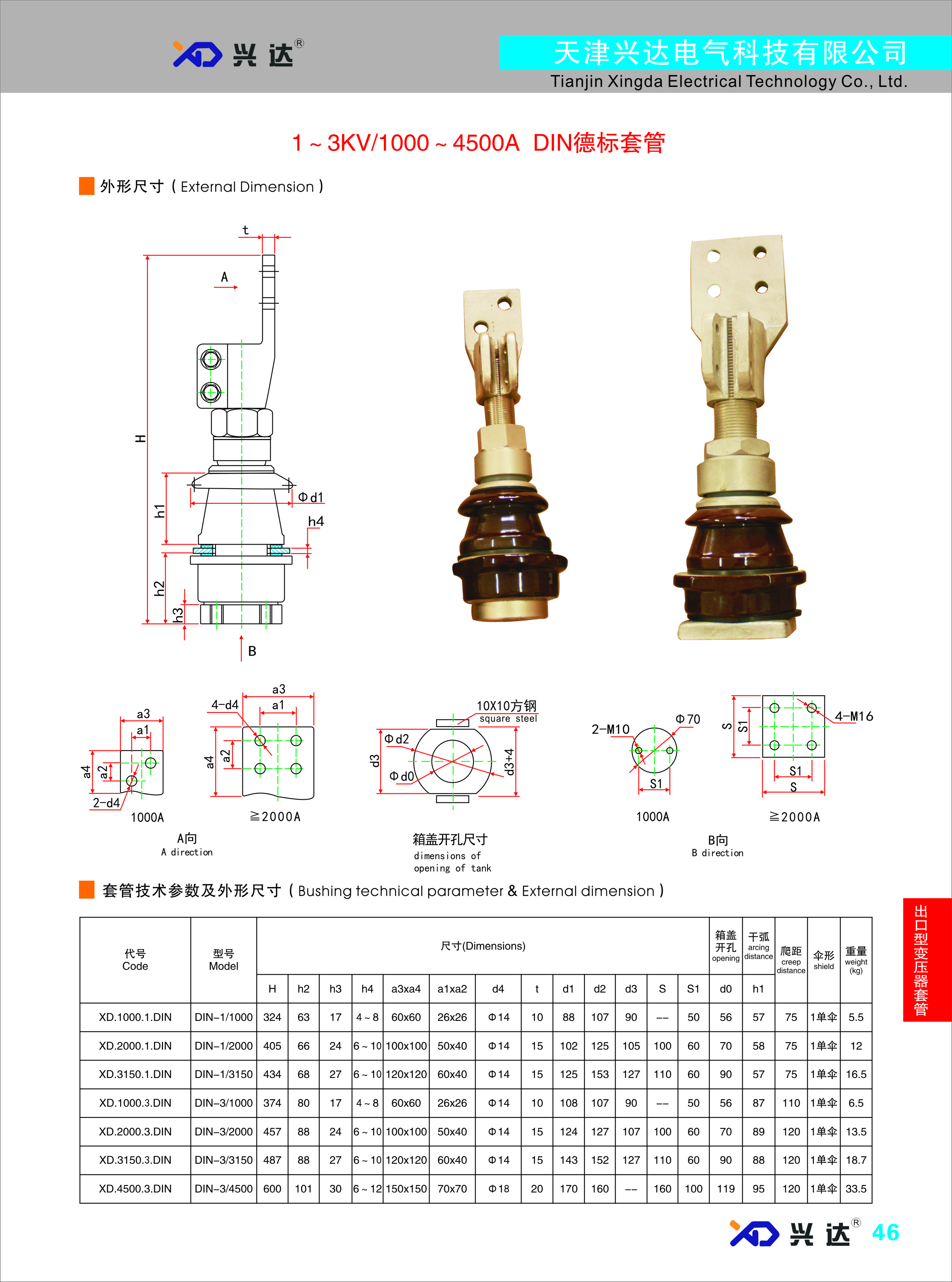 天津興達電氣科技有限公司成立于2006年,位于天津市津南區(qū)八里臺工業(yè)園區(qū),地理位置優(yōu)越,交通便利,是一家專業(yè)從事變壓器配件的高新技術(shù)企業(yè)。主要生產(chǎn)變壓器護套、油位計、接線端子、活門、蝶閥、40.5kv及以下普通套管、法蘭式套管、德標(biāo)DIN套管、美標(biāo)ANSI套管、以及按照IEC、EN、AP、HD標(biāo)準(zhǔn)生產(chǎn)的變壓器套管,并可研發(fā)、設(shè)計制造各種非標(biāo)變壓器套管現(xiàn)已成為保定天威、北京合縱、新疆特變電工、等150家企業(yè)的合格供應(yīng)商。