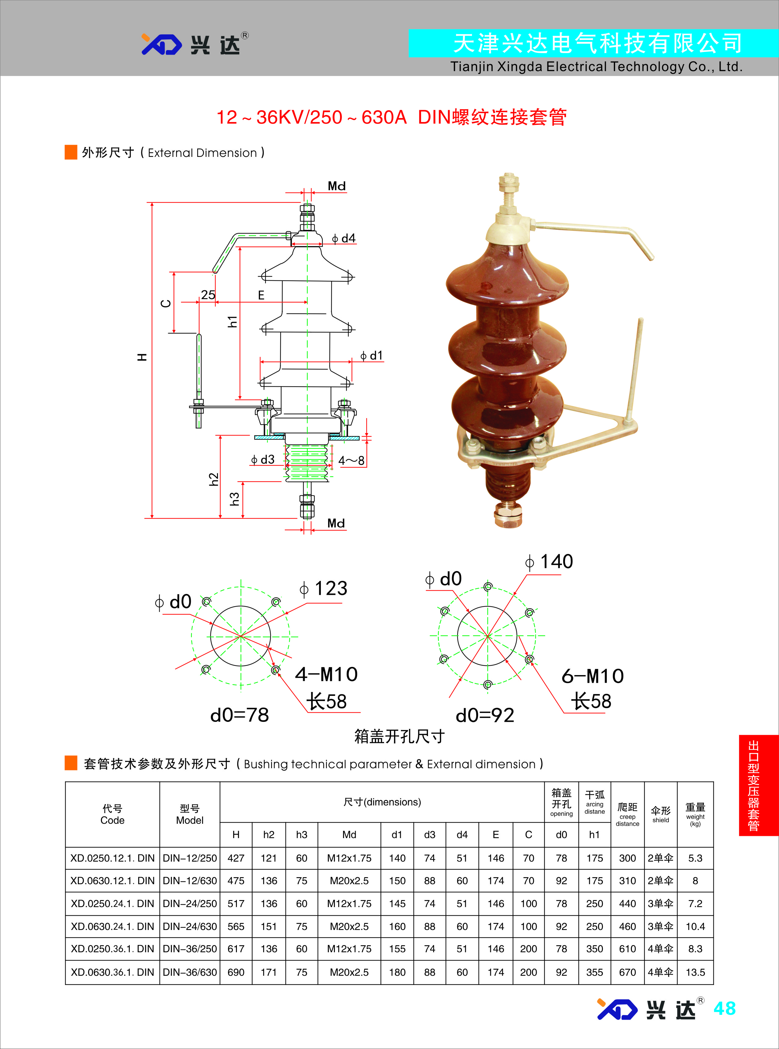 天津興達電氣科技有限公司成立于2006年,位于天津市津南區(qū)八里臺工業(yè)園區(qū),地理位置優(yōu)越,交通便利,是一家專業(yè)從事變壓器配件的高新技術(shù)企業(yè)。主要生產(chǎn)變壓器護套、油位計、接線端子、活門、蝶閥、40.5kv及以下普通套管、法蘭式套管、德標DIN套管、美標ANSI套管、以及按照IEC、EN、AP、HD標準生產(chǎn)的變壓器套管,并可研發(fā)、設(shè)計制造各種非標變壓器套管。現(xiàn)已成為保定天威、北京合縱、新疆特變電工、等150家企業(yè)的合格供應商。