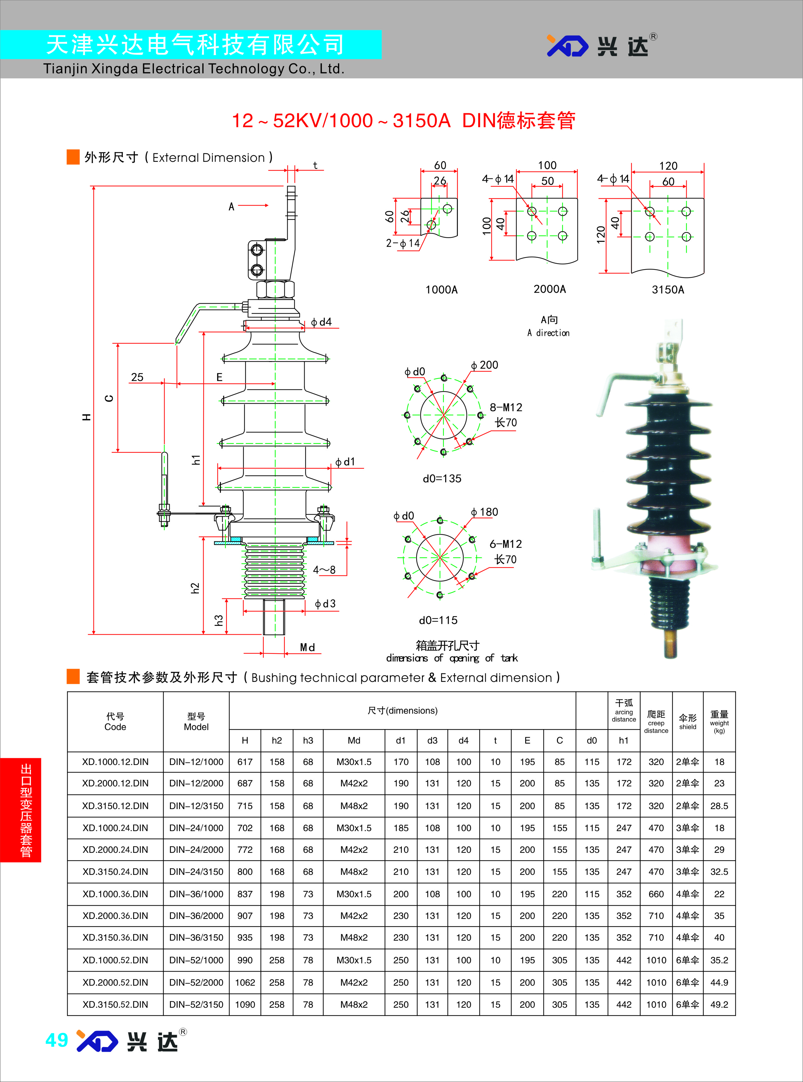 天津興達電氣科技有限公司成立于2006年,位于天津市津南區(qū)八里臺工業(yè)園區(qū),地理位置優(yōu)越,交通便利,是一家專業(yè)從事變壓器配件的高新技術(shù)企業(yè)。主要生產(chǎn)變壓器護套、油位計、接線端子、活門、蝶閥、40.5kv及以下普通套管、法蘭式套管、德標DIN套管、美標ANSI套管、以及按照IEC、EN、AP、HD標準生產(chǎn)的變壓器套管,并可研發(fā)、設(shè)計制造各種非標變壓器套管現(xiàn)已成為保定天威、北京合縱、新疆特變電工、等150家企業(yè)的合格供應(yīng)商。
